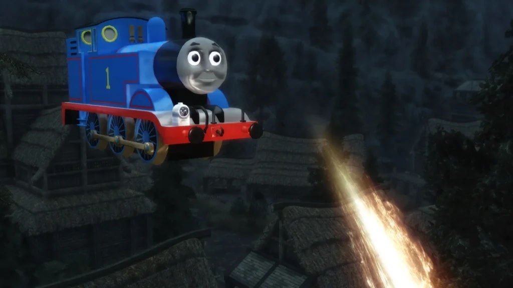 Kevin “Trainwiz” Brock, c’est son nom, est le game designer à l’origine de ce cauchemar ferroviaire apparu en décembre 2013. À l’époque, un pote lui avait filé des modèles 3D de Thomas récupérés d’un jeu iPhone pourrave, et il s’était dit “tiens, et si je les collais sur les dragons de Skyrim”. Ensuite, le mod a cartonné avec plus de 70 000 téléchargements et presque 600 000 vues sur Nexus Mods et depuis, les mods Thomas ont envahi absolument tout ce qui bouge dans le jeu vidéo : Elden Ring, Resident Evil 2, Monster Hunter World, Hogwarts Legacy…